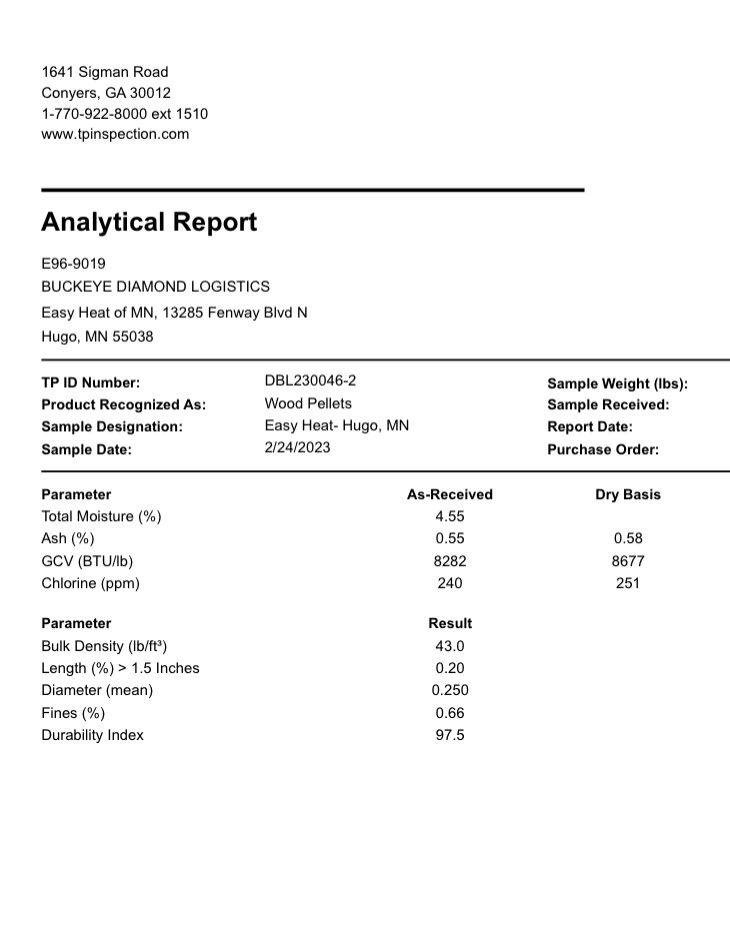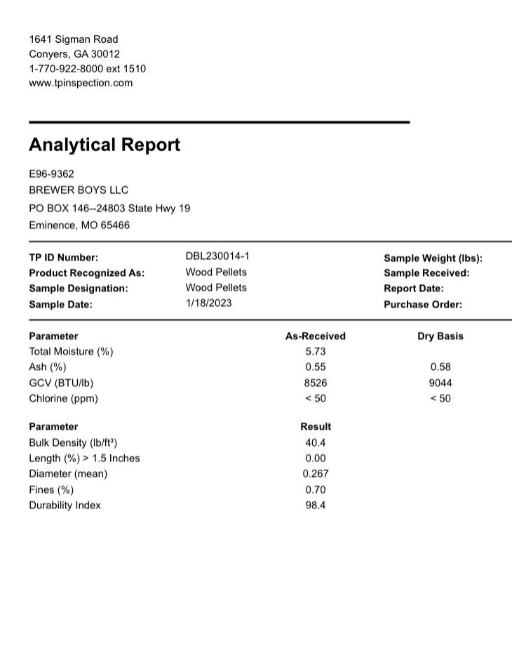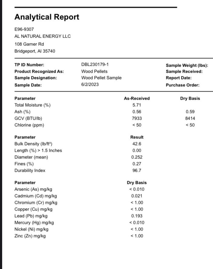 On this page you will find the pellet test results for some of the products we handle. They are not all current at this time but we will be updating this page very soon. For the time you can get an idea of what we offer.